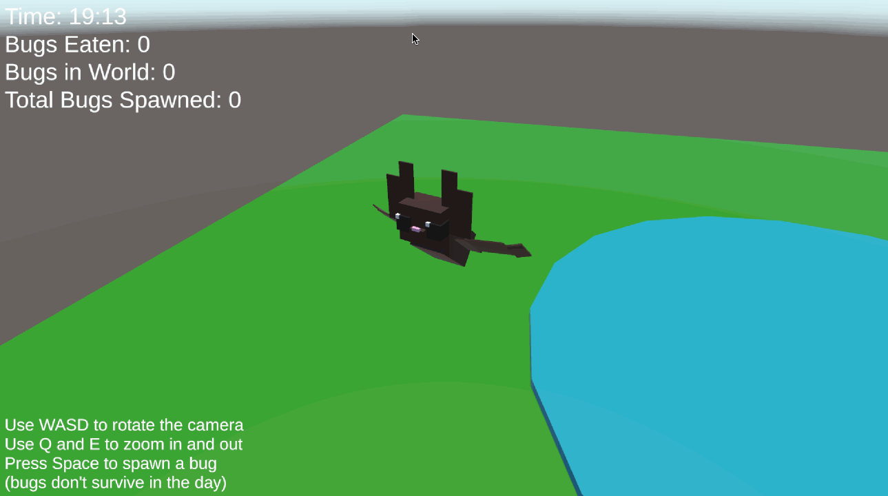 I adored this project! I was actually extremely proud of my low-poly bat, I think that it’s really one of the highlights of the project; my professor and a lot of my peers found the animations adorable, especially the one where it goes to sleep! Aside from that, I’d say I’m especially happy with how the flying turned out. I think the work around I did with the NavMesh worked really well for the flying effect, allowing the bat to effectively navigate through a 3D space.