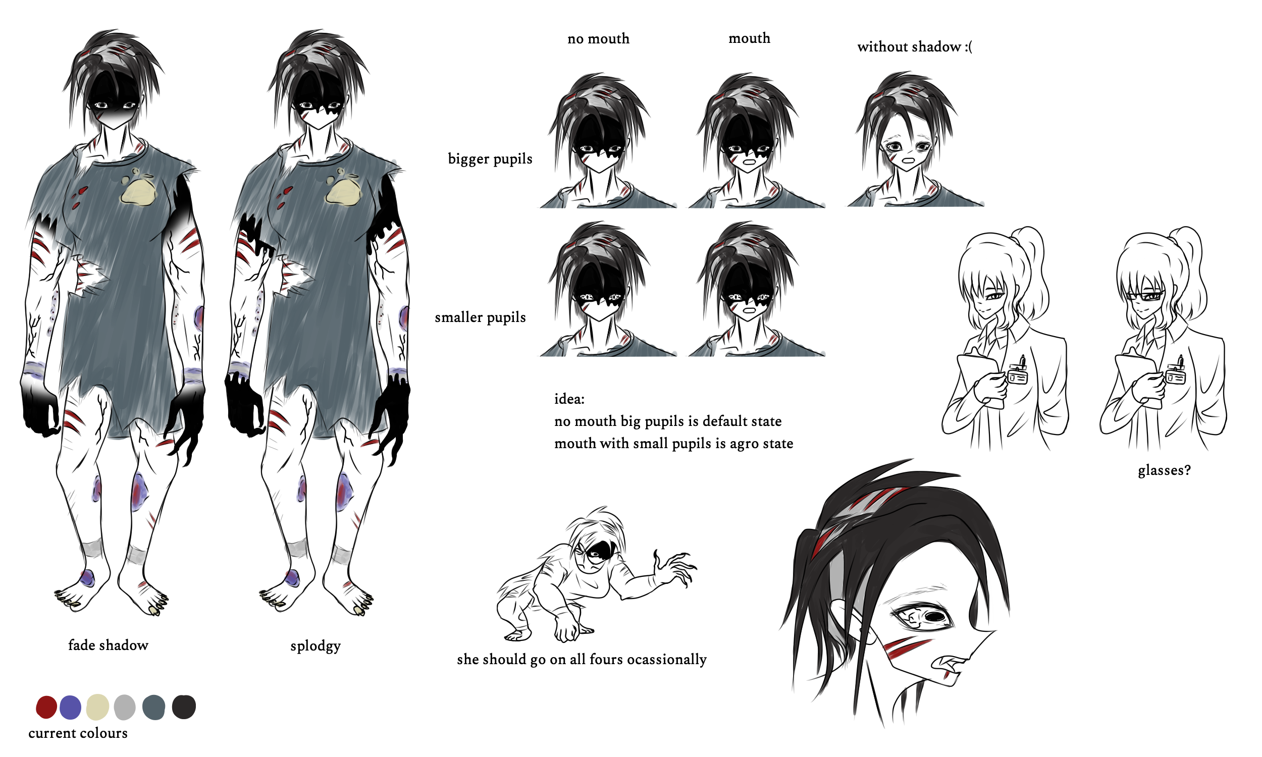 For this project, I mainly worked on asset creation, specifically as the art director and the character designer. All final asset decisions had to be made by me; I often chose between different styles for inventory items, as well as props present in levels. I was also the level designer for the tutorial of the game, where the player learns how to interact with the world and solve their first puzzle. The bulk of my work, however, was doing concept art for the main threat and mascot of the game, the mutant patient. I did a lot of conceptualizing for her design, and then went on to create props and animations for her to use in-game. I also created a comic style cutscene of her escaping from her bindings at the end of the tutorial, that served to transition the player into the next level.